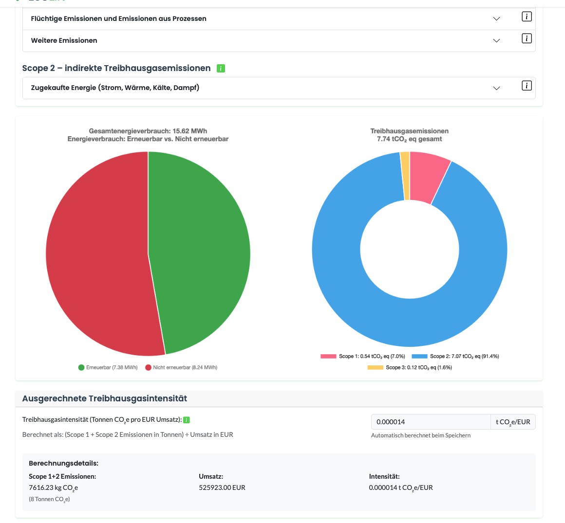Eingabe der Umweltkennzahlen inklusive CO2-Footprint