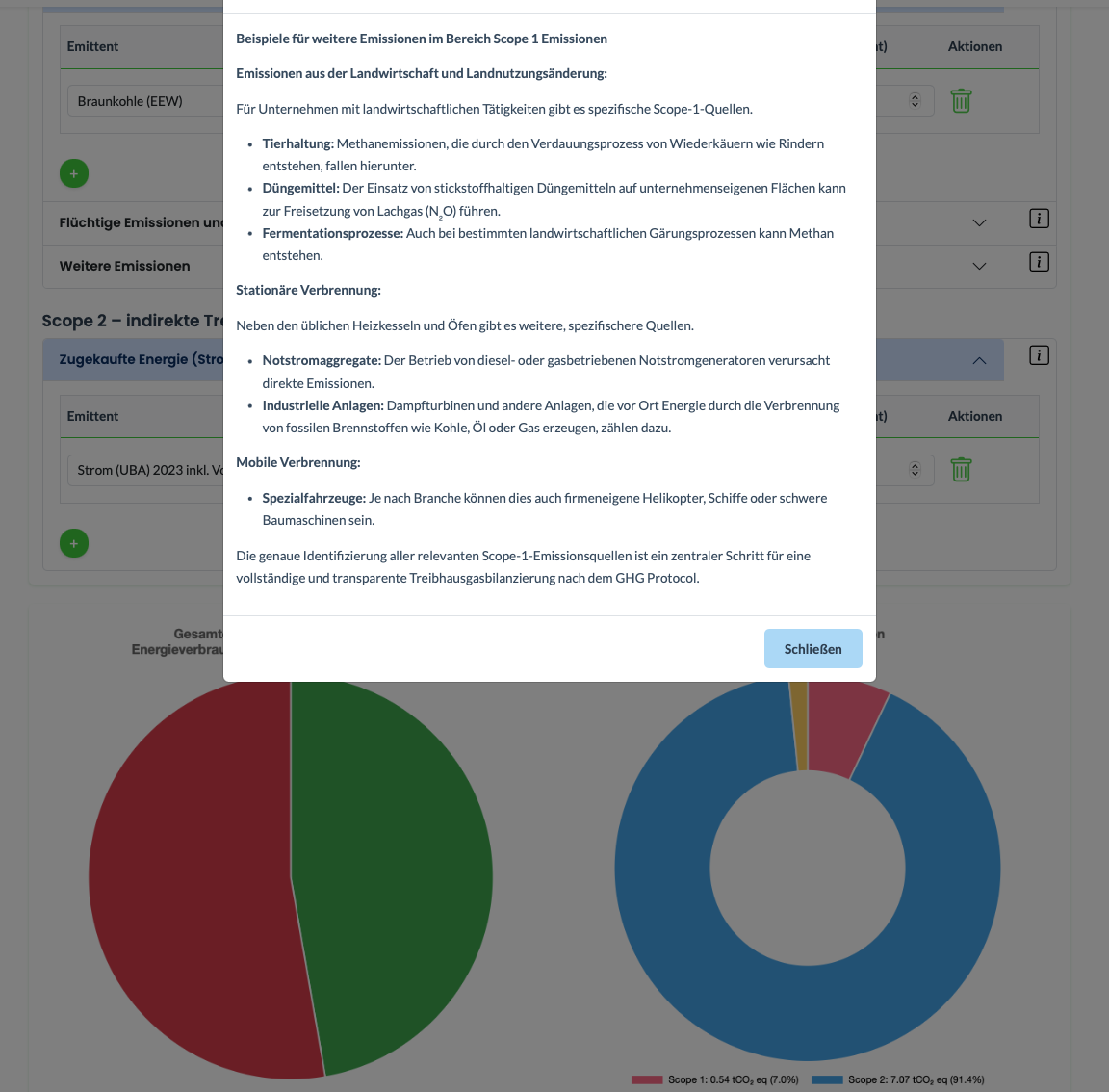 Geben Sie geführt die Daten zu Energieverbrauch, Fuhrpark und weitere Emittenten aus Ihrem Unternehmen ein. Hilfetexte unterstützen Sie bei der Eingabe und unser eingebauter KI-Assistent hilft Ihnen bei der Identifikation der Emittenten. Unsere Software berechnet die relevanten Kennzahlen und Tonnen CO2-Äquivalent.