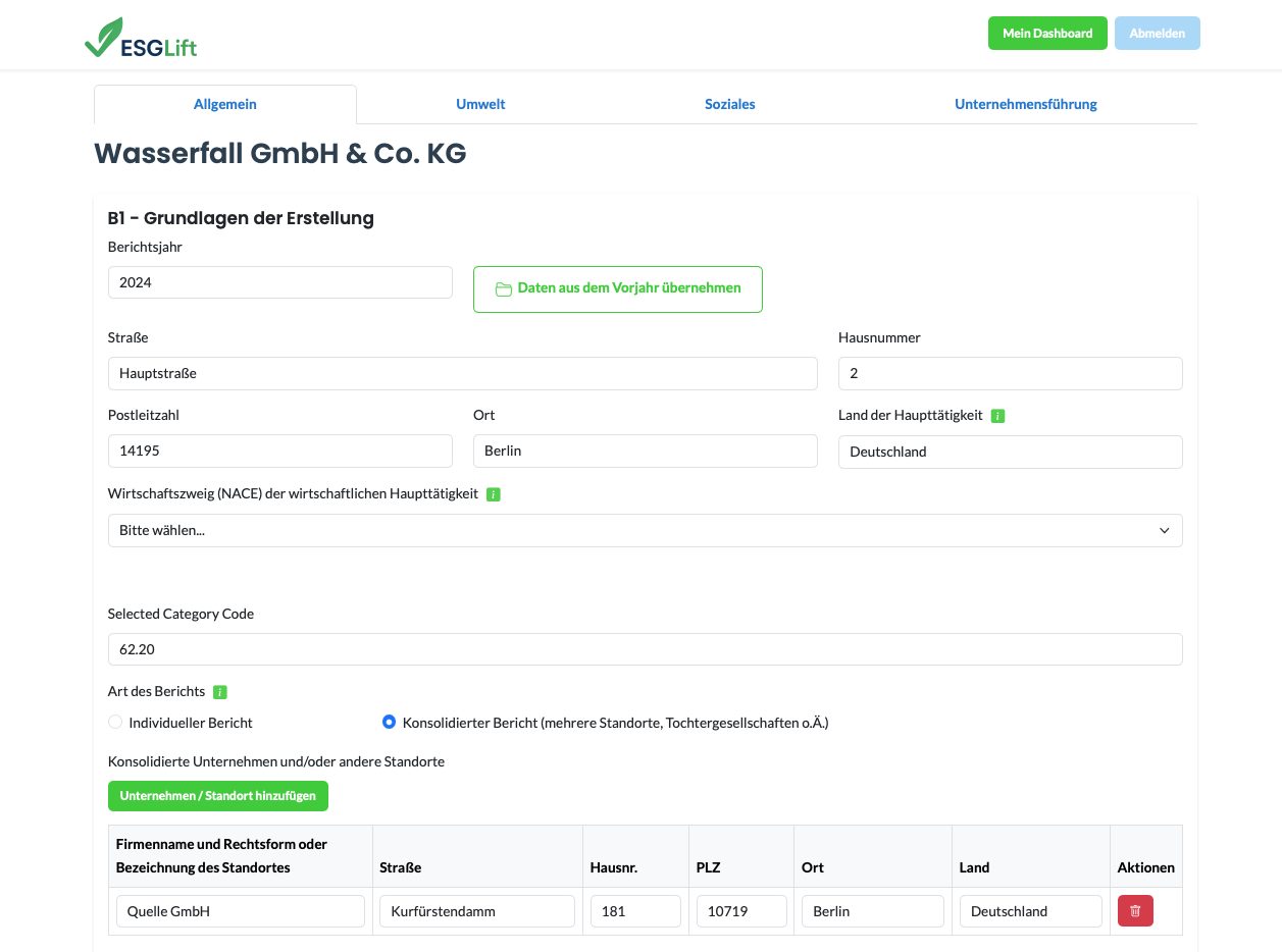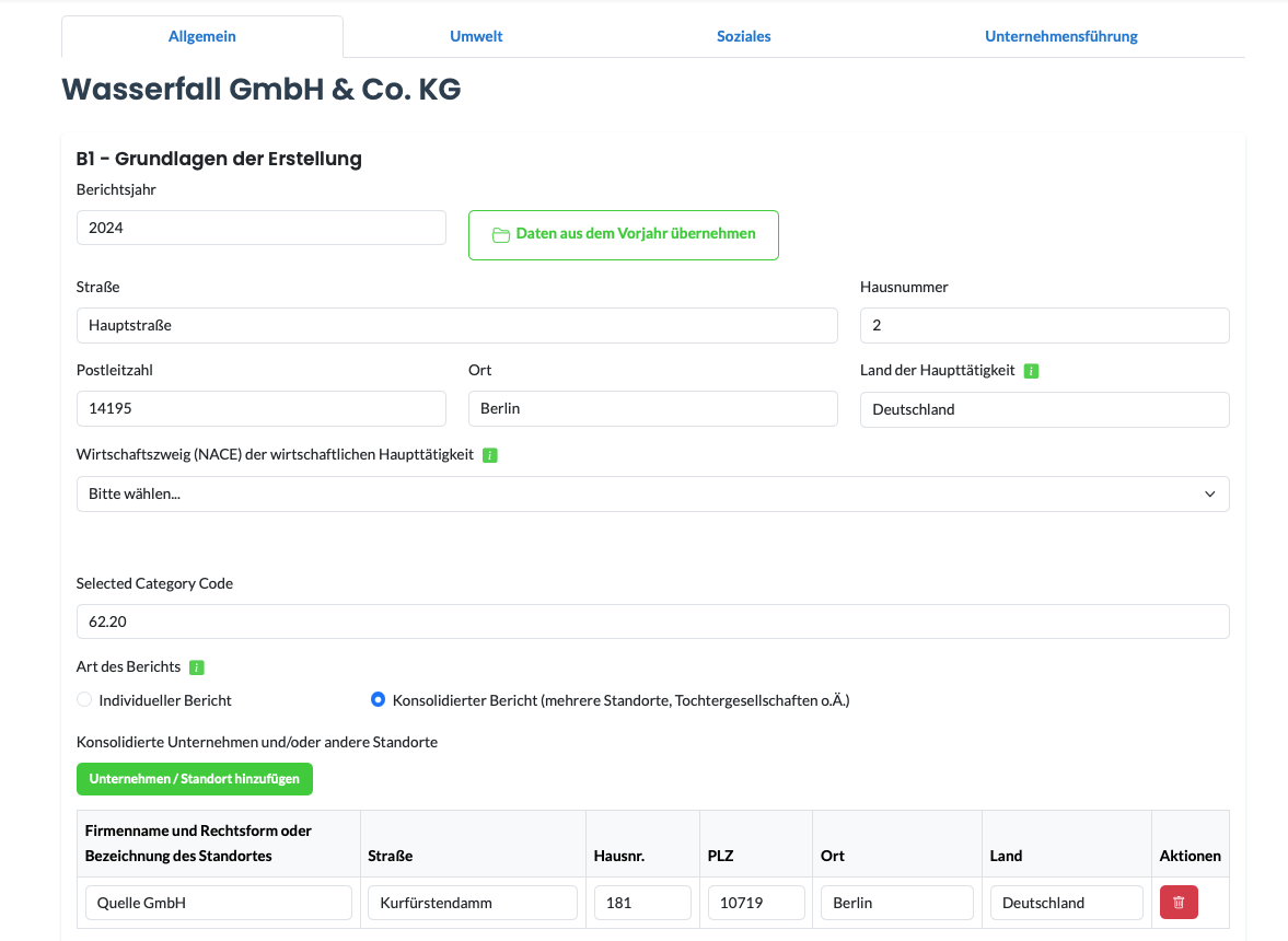 Erfassen Sie die relevanten Daten gemäß der Struktur des VSME Standards ein. Hilfetexte unterstützen Sie bei der korrekten und konformen Eingabe – auch ohne Vorwissen!